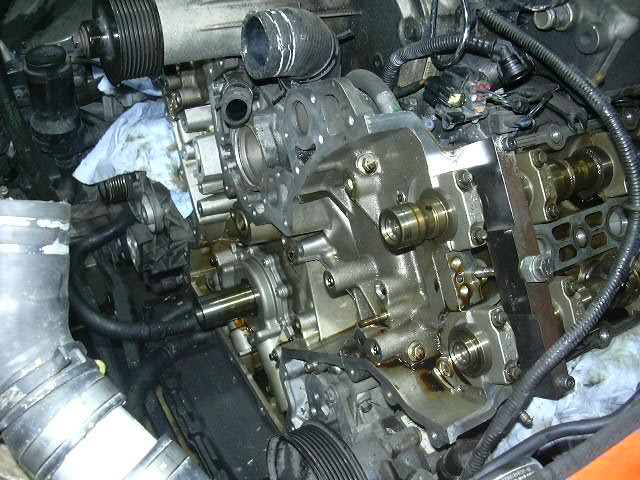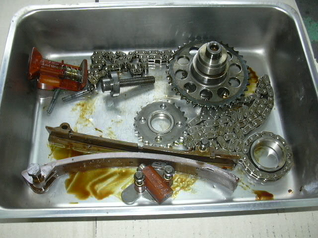 むき出しになっているカムとチェーンを見ながらゆっくりとクランクを・・・